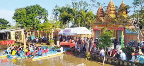 Đồng bào Khmer tham gia các hoạt động trong Ngày hội Đại đoàn kết dân tộc tại chùa Đìa Muồng (ấp Vĩnh Lộc, xã Vĩnh Phú Đông). Ảnh: T.L