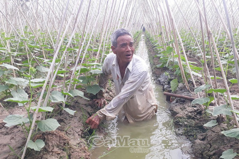 | Ông Út khai rãnh cho nước vào để tránh nhiễm mặn và dễ tưới tiêu. |