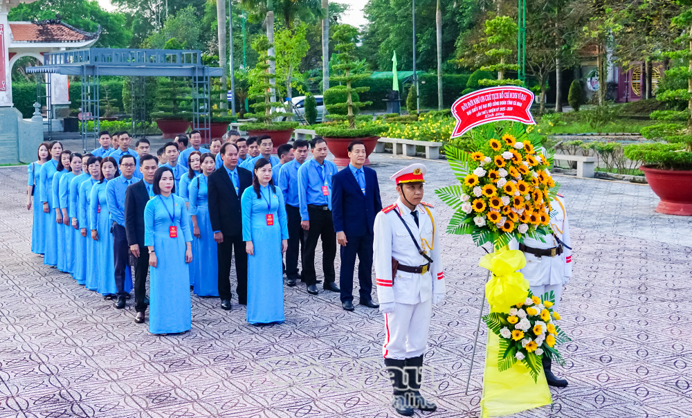 Trước khi khai mạc đại hội, Ban Thường vụ LĐLĐ tỉnh Cà Mau tổ chức đoàn đại biểu đến viếng, dâng hương tại Khu tưởng niệm Chủ tịch Hồ Chí Minh (phường An Xuyên).