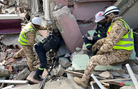 Bộ đội công binh Việt Nam sử dụng thiết bị đặc chủng để phối hợp với đội CHCN Bahrain tìm kiếm nạn nhân động đất.