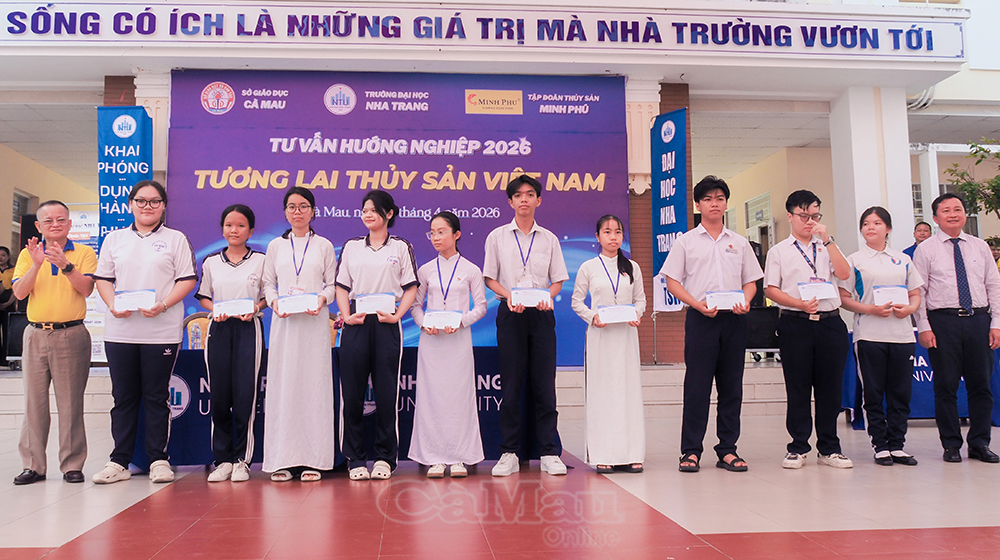 Chương trình do Sở Giáo dục và Đào tạo tỉnh Cà Mau phối hợp với Trường Đại học Nha Trang và Tập đoàn Thuỷ sản Minh Phú tổ chức tại Trường THPT Cà Mau.