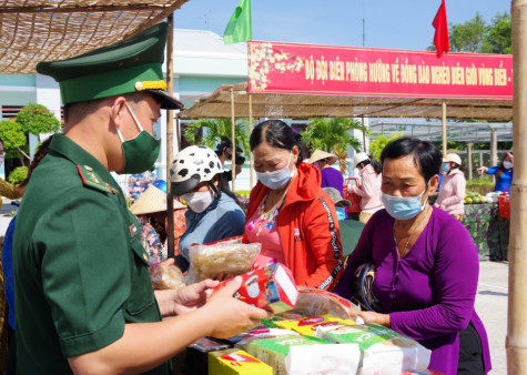 Phụ nữ trên địa bàn biên giới tham gia phiên chợ 0 đồng do BĐBP tổ chức.
