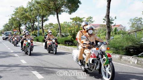 | Lực lượng Cảnh sát giao thông Công an tỉnh Cà Mau ra quân đảm bảo an ninh trật tự, trật tự an toàn giao thông. |