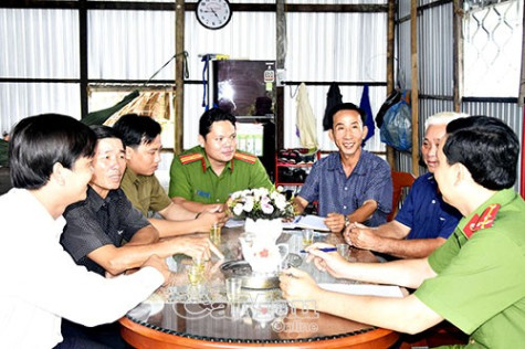 | Công an huyện và chính quyền địa phương tiếp tục vận động nhân dân xây dựng trụ đèn ánh sáng an ninh. |