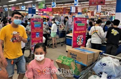 (CMO) Chiều nay (17/7), ngay sau khi có Công văn chỉ đạo của Thủ tướng Chính phủ về việc giãn cách các tỉnh phía Nam, người dân đã đổ xô đi mua lương thực, hàng hoá dự trữ. Hầu hết các siêu thị, cửa hàng tạp hoá, Bách hóa Xanh, Vinmart đã hết hàng của ngày. Không chỉ các chợ tại TP Cà Mau, mà trong buổi chiều nay, người dân tuyến huyện cũng tập trung đông đúc đi mua hàng hoá dự trữ.