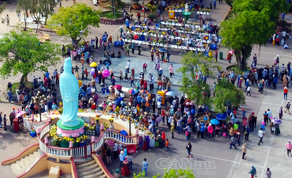 Xuyên suốt những ngày Tết, các điểm du lịch hành hương thu hút đông khách thập phương. Từ mùng 1 đến mùng 5 Tết, dòng người nườm nượp đến chiêm bái, thưởng lãm cảnh chùa tại Quán âm Phật đài (phường Hiệp Thành) và thắp hương cầu nguyện những điều tốt đẹp trong năm mới.