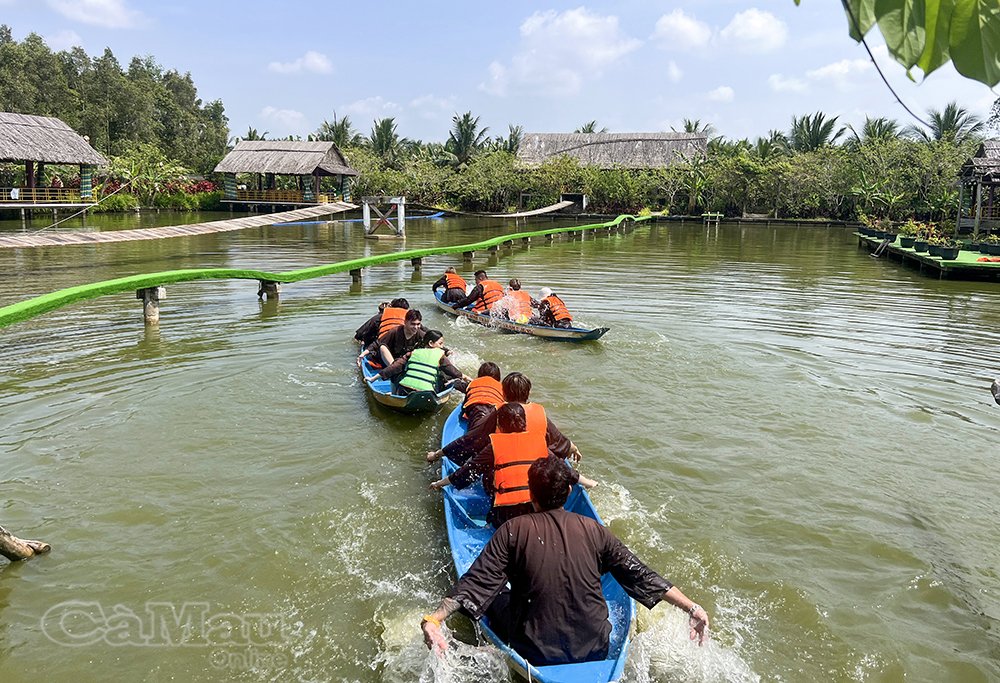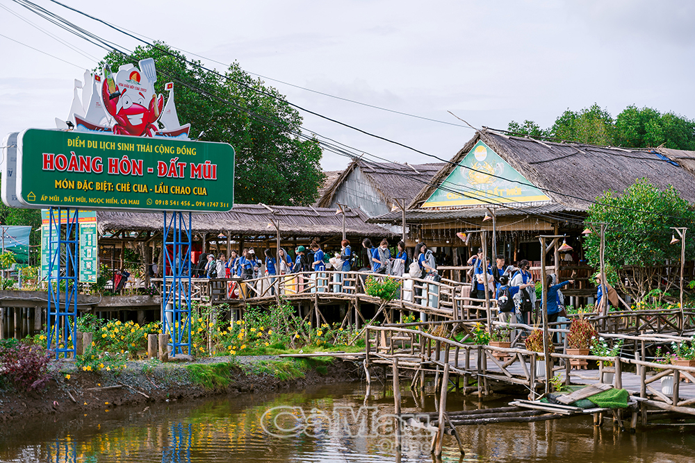 Điểm du lịch sinh thái cộng đồng Hoàng Hôn (xã Đất Mũi) thu hút du khách đến trải nghiệm.