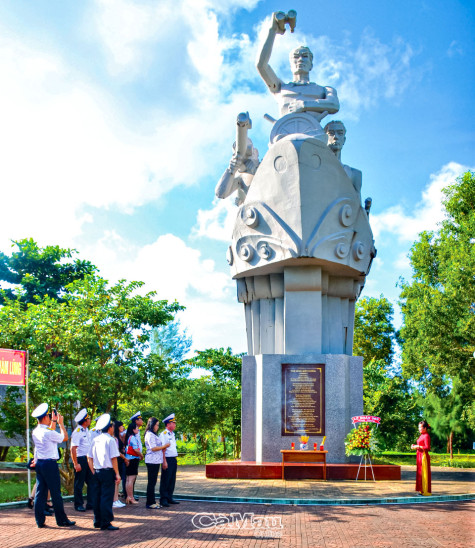 | Di tích lịch sử - văn hoá quốc gia Bến Vàm Lũng, thị trấn Rạch Gốc, là niềm tự hào và là tài nguyên du lịch của vùng đất Rạch Gốc - Tân Ân. (Ảnh chụp chuyến về nguồn của Lữ đoàn 962 (tiền thân là Ðoàn 962), trước khi dịch bệnh bùng phát). |