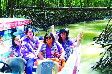 | Du khách thích thú trải nghiệm tour xuyên rừng tại Mũi Cà Mau. Ảnh: Khánh Phương |