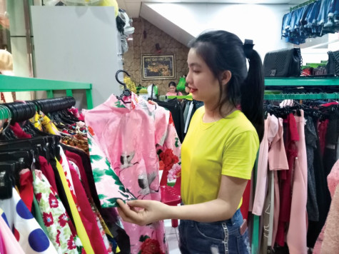 | Khách hàng tranh thủ chọn áo dài Tết. |