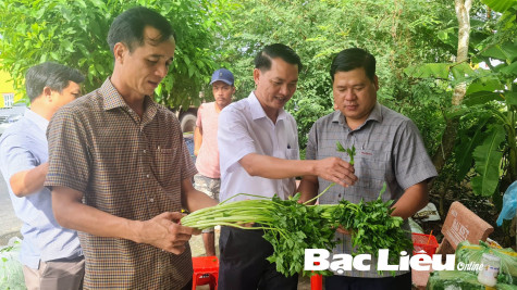 Lãnh đạo Sở NN&PTNT và huyện Phước Long tham quan sản phẩm rau cần nước của HTX 8/3 (xã Vĩnh Thanh, huyện Phước Long).