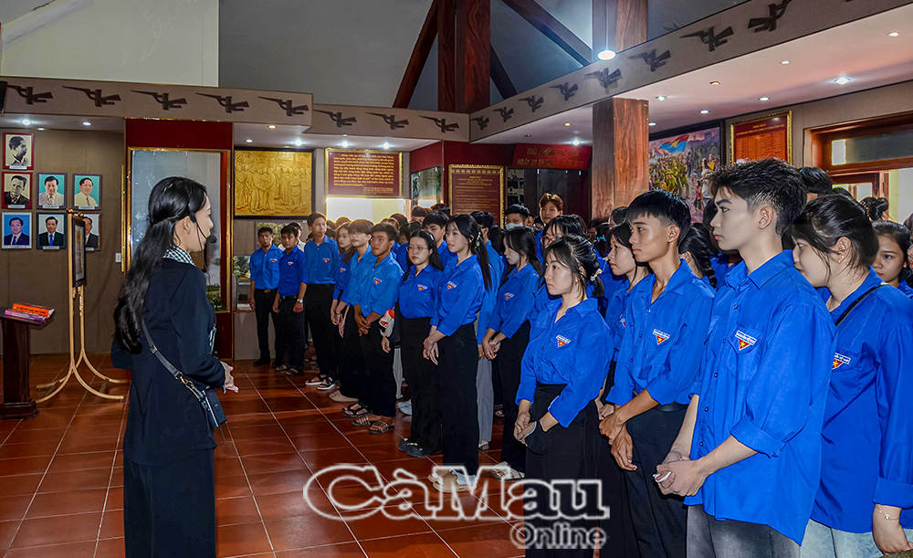 Đoàn viên, thanh niên tổ chức hoạt động về nguồn tại Khu Di tích lịch sử Quốc gia đặc biệt Căn cứ Cái Chanh (ấp Cây Cui, xã Ninh Thạnh Lợi).
