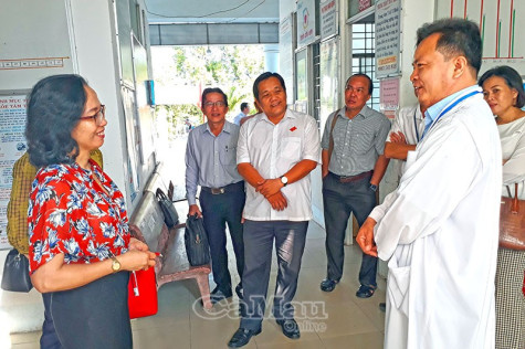 | Đoàn giám sát của HĐND tỉnh kiểm tra thực trạng hoạt động các trạm y tế cơ sở tại huyện U Minh. (Ảnh chụp tại Trạm Y tế xã Khánh Thuận). |