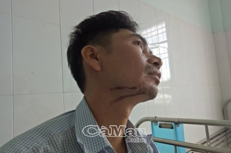 Cú chích điện gây ra 2 vết thương phía dưới cằm bên phải anh Biên, dài khoảng 15 cm.