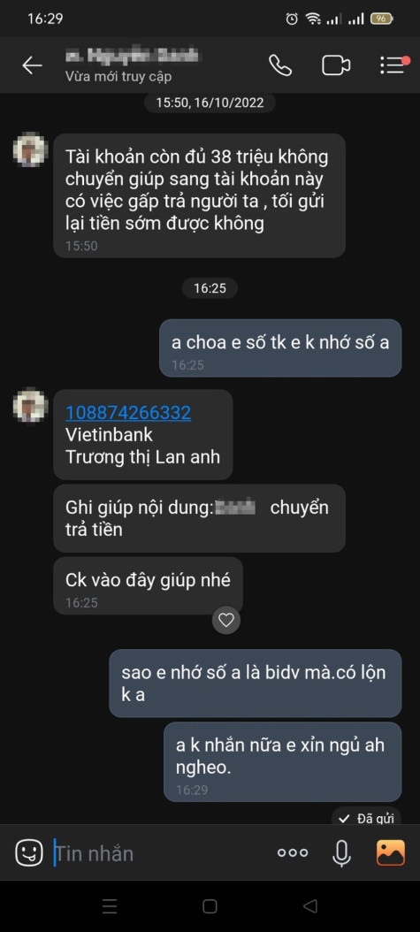 Thời gian gần đây, các vụ lừa đảo sử dụng công nghệ cao liên tiếp xảy ra trên mạng Zalo. Các đối tượng có nhiều chiêu trò câu dẫn để truy cập vào trang cá nhân chính chủ để từ đó thực hiện hành vi lừa đảo. (ảnh chụp màn hình 1 tài khoản Zalo đã bị hack)