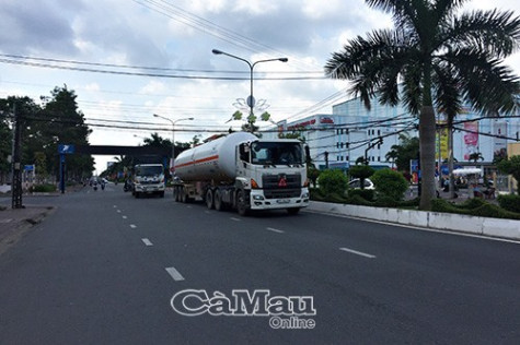| Nhiều loại xe có tải trọng khủng vẫn hàng ngày lưu thông bất kể giờ giấc vào khu vực nội ô TP Cà Mau. |