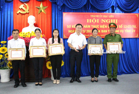 Thành ủy TP. Bạc Liêu khen thưởng các đơn vị thực hiện tốt Chỉ thị 12 giai đoạn 2018 - 2023. Ảnh: T.T