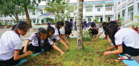 Em Tô Bảo Trân, Liên đội trưởng của trường, cho biết, các em được thầy cô giáo dục ý thức bảo vệ môi trường lồng ghép trong các môn học: Sinh học, Ngữ văn, Giáo dục công dân...