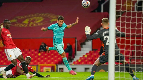Với lợi thế sân nhà, Man Utd là đội nhập cuộc đầy chủ động. Dù không quá tốc độ, nhưng đội bóng áo đỏ lên bóng khá thoáng. Ngay phút thứ 5, nếu xử lý tự tin hơn, Cavani đã có thể ghi bàn sau tình huống dùng chân chơi bóng bất cẩn của thủ thành Alisson. Mặc dù vậy, khi trận đấu bước sang phút 10, từ pha căng ngang của Fernandes, trung vệ Phillips đá phản lưới nhà, giúp Man Utd tạm dẫn 1 – 0. Ban đầu bàn thắng xác định do trung vệ đội khách phản lưới. Nhưng ngay sau đó, Fernandes mới là người được xác định ghi bàn.