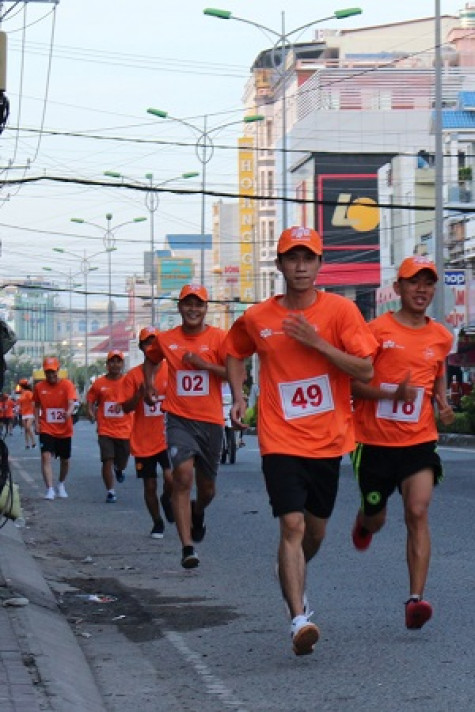 Các VĐV chạy qua tuyến đường Trần Hưng Đạo, Phường 5, TP. Cà Mau.