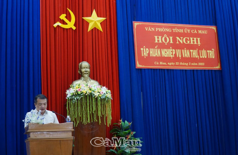 (CMO) Sáng ngày 22/3, Cục Lưu trữ Văn phòng Trung ương Đảng phối hợp cùng Văn phòng Tỉnh uỷ Cà Mau tổ chức khai mạc Hội nghị tập huấn nghiệp vụ công tác văn thư, lưu trữ (VTLT) cho gần 200 cán bộ lãnh đạo và cán bộ trực tiếp thực hiện nhiệm vụ VTLT tại các cơ quan đảng, tổ chức chính trị - xã hội cấp tỉnh; các văn phòng huyện uỷ, thành uỷ, đảng uỷ trực thuộc Tỉnh uỷ và đảng uỷ xã, phường, thị trấn.