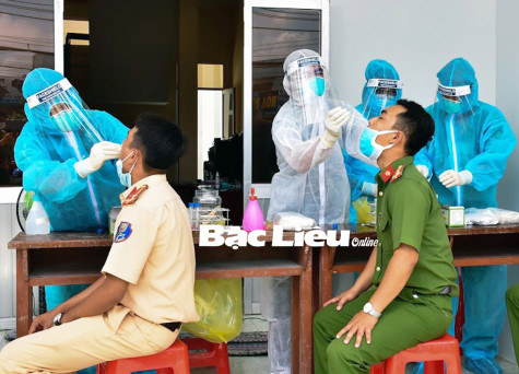 Trung tâm Kiểm soát bệnh tật tỉnh lấy mẫu bệnh phẩm tầm soát bệnh COVID-19 trên địa bàn huyện Hòa Bình. Ảnh: CDC