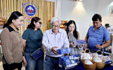 Hiệp hội Du lịch Đồng bằng sông Cửu Long tham quan khu trưng bày các sản phẩm muối tại Công ty Muối Bạc Liêu.