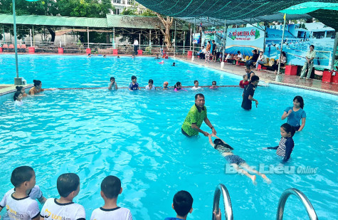 Sáng 4/7, tại hồ bơi khu Địa ốc (Phường 1, TP. Bạc Liêu), Quỹ Bảo trợ trẻ em tỉnh tổ chức khai giảng 2 lớp dạy bơi miễn phí cho trẻ em trên địa bàn TP. Bạc Liêu. Tham gia học bơi có gần 70 em từ 9 - 4 tuổi là học sinh, trẻ mồ côi đang được nuôi dưỡng tại các cơ sở bảo trợ xã hội.