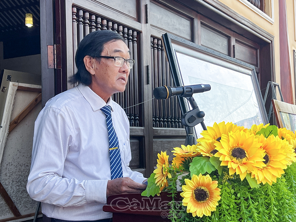 Họa sĩ Dư Minh Chiến, Chi hội trưởng Chi hội Mỹ thuật tỉnh Cà Mau, phát biểu tại lễ khai mạc, nhấn mạnh vị thế của mỹ thuật Cà Mau trong dòng chảy phát triển chung của mỹ thuật Việt Nam.