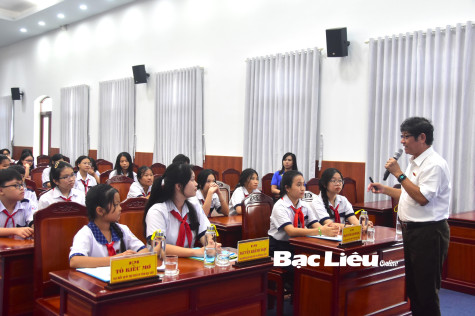 Phát biểu tại buổi gặp gỡ, ông Nguyễn Huy Thái - Phó trưởng Đoàn chuyên trách Đoàn đại biểu Quốc hội tỉnh đã giới thiệu cho các “đại biểu nhí” về hoạt động của Quốc hội, các đại biểu Quốc hội tỉnh Bạc Liêu; tập huấn kỹ năng, kiến thức và hướng dẫn đại biểu chuẩn bị nội dung thảo luận tại phiên họp giả định. Đồng thời, hướng dẫn các đại biểu cách tiếp xúc cử tri, lắng nghe nguyện vọng và trả lời ý kiến, kiến nghị của cử tri là học sinh về các chủ đề của phiên họp giả định.