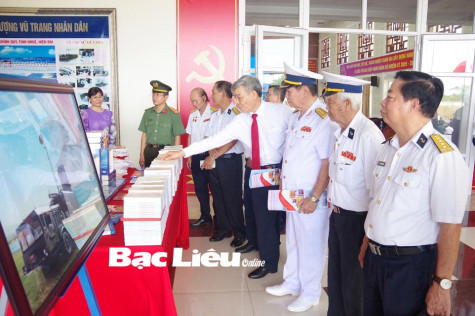 Các đại biểu tham quan triển lãm sách về Hải quân nhân dân Việt Nam tại buổi gặp mặt kỷ niệm 70 năm Ngày thành lập Hải quân nhân dân Việt Nam.