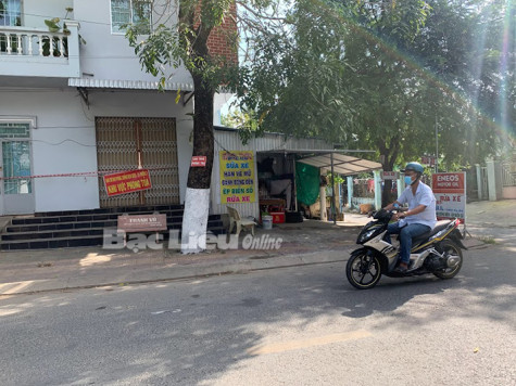 Hai hộ dân trên đường Bà Huyện Thanh Quan (Phường 8, TP. Bạc Liêu) bị phong tỏa do liên quan COVID-19.