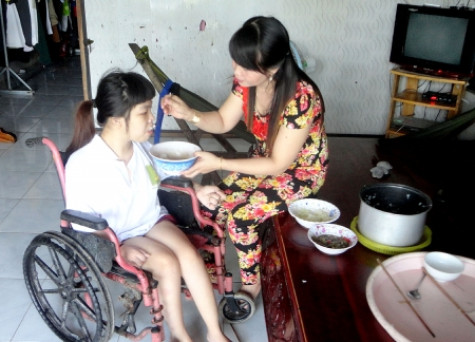 Cô giáo Ðàm Thị Nga, giáo viên Trường Mầm non Hoa Mai, xã Nguyễn Phích, huyện U Minh, có con đầu lòng bị bệnh bại não bẩm sinh. Năm nay cháu hơn 10 tuổi, nhưng chỉ ngồi một chỗ, không đi lại và tự sinh hoạt được, mỗi khi cháu muốn đi vệ sinh, tắm rửa hoặc di chuyển chỗ ngồi, chỗ nằm đều phải nhờ sự trợ giúp của cha, mẹ và người thân trong nhà.