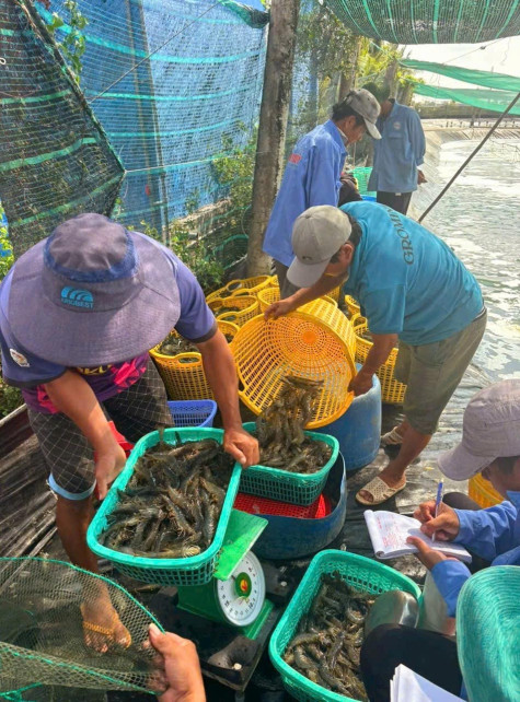 Thương lái thu mua tôm nuôi trên địa bàn huyện Đông Hải.