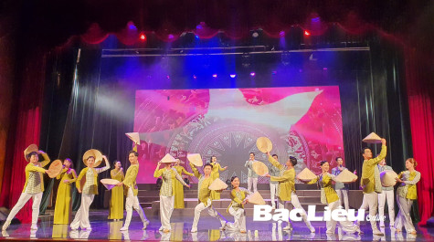 Biểu diễn văn nghệ kỷ niệm 80 năm Đề cương văn hóa Việt Nam tại Nhà hát Cao Văn Lầu.
