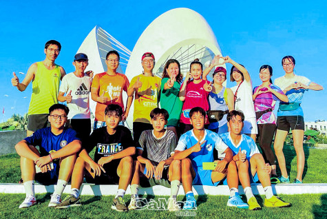 | Các thành viên Câu lạc bộ chạy Cà Mau háo hức trước giờ khai cuộc giải Ðất Mũi Marathon Cà Mau 2022. |