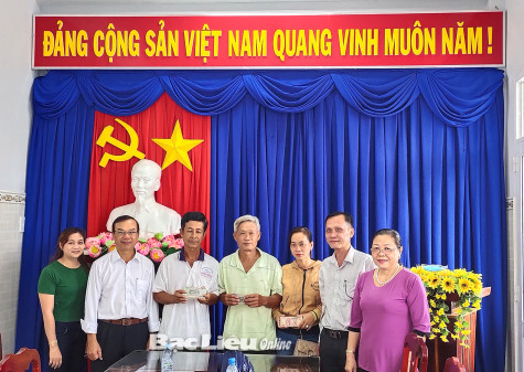 Chiều 23/5, Hội Nông dân Phường 5 tổ chức giải ngân 100 triệu đồng từ nguồn Quỹ Hỗ trợ nông dân TP. Bạc Liêu cho hội viên nông dân trên địa bàn phường thực hiện Dự án “Nuôi heo thương phẩm” - (ảnh).