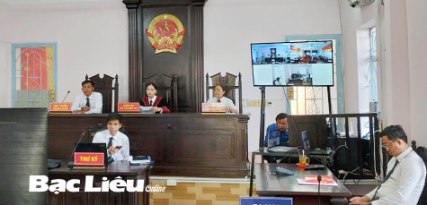 Một phiên tòa trực tuyến tại Tòa án nhân dân TP. Bạc Liêu. Ảnh: K.P