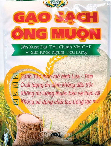 | Xây dựng thương hiệu, nhãn mác, nguồn gốc của hàng hoá là một trong những mắt xích quan trọng cho chuỗi tiêu thụ nông, thuỷ sản thời gian tới. (Ảnh: Gạo sạch Ông Muộn, xã Lý Văn Lâm, TP Cà Mau). |