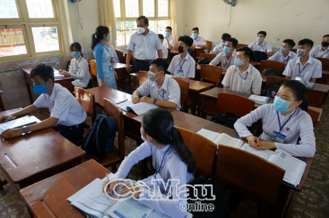 Đến kiểm tra tại trường THPT Cà Mau, ngôi trường có số học sinh lớp 12 đông nhất tỉnh và nằm trong tốp những trường có số học sinh đông của cả nước, với hơn 1.024 em, Tiến sĩ Nguyễn Minh Luân ghi nhận những nỗ lực của tập thể nhà trường, nhất là tinh thần trách nhiệm của giáo viên khi phải tăng gấp đôi số tiết dạy và dạy 2 buổi/ngày do phải chia nhỏ 24 lớp khối 12 thành 48 lớp để đảm bảo an toàn sức khỏe học sinh.
