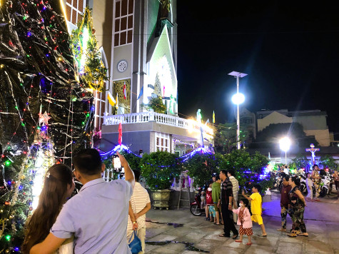 Không khí Giáng sinh tràn ngập tại Nhà thờ Bạc Liêu (Phường 2, TP. Bạc Liêu) khi người dân cùng nhau hòa mình vào những hoạt động lễ hội sôi động. Ảnh: N.Q