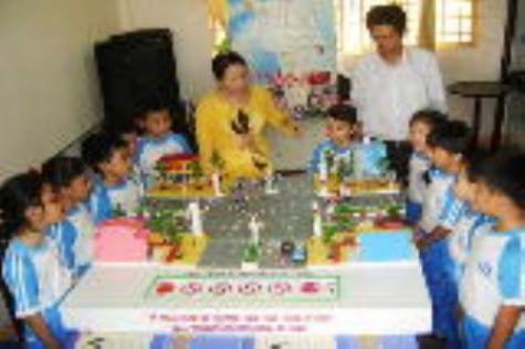 | Học sinh trường Tiểu học Hùng Vương học luật giao thông. |