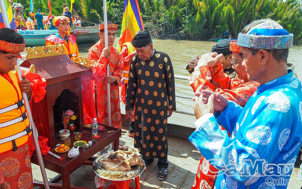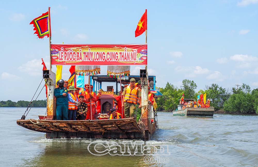 Đoàn thuyền rước bà trên sông - hình ảnh đậm nét văn hoá sông nước Cà Mau.