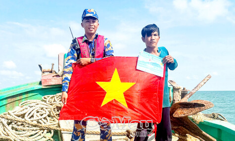 Đặc biệt, đơn vị đã tổ chức trao tặng cờ Tổ quốc cho ngư dân, động viên bà con yên tâm vươn khơi, bám biển.