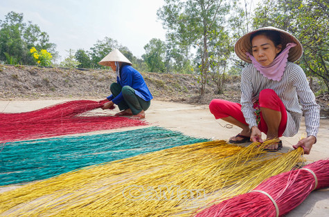 | Lác phải nhuộm và phơi đủ nắng mới có thể dệt thành sản phẩm chiếu chất lượng. |