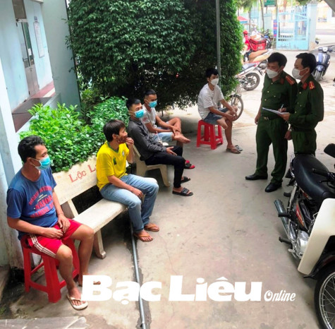 Công an Phường 3 (TP. Bạc Liêu) thu gom các đối tượng nghi nghiện lên test nhanh ma túy. Ảnh: H.A