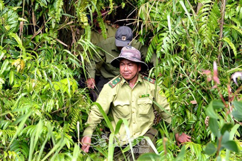 | Vào mùa khô hạn, luồn rừng tuần tra là công việc thường xuyên của lực lượng giữ rừng. Ảnh: Q.Rin |