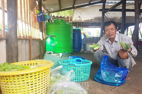 Ông Minh cho biết: “Tổng cộng tôi có 5 công đất trồng màu. Tôi trồng quanh năm, tuỳ theo loại hoa màu mà mỗi năm sẽ được 3-4 vụ. Hiện đang thu hoạch dưa leo, mướp và cải xanh. Nói chung, nhờ trồng màu mà thu nhập mỗi ngày khá ổn, có khi vài trăm ngàn, có khi cả triệu đồng”.