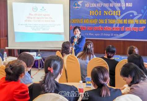 (CMO) Nằm trong chuỗi các hoạt động hỗ trợ phụ nữ Cà Mau nâng cao quyền năng kinh tế, ngày 13/12, Ban Thường vụ Hội LHPN tỉnh tổ chức Hội nghị “Nói chuyện chuyên đề khởi nghiệp, chia sẻ thành công” mô hình phi nông nghiệp nhằm nâng cao nhận thức cho phụ nữ về phong trào phụ nữ khởi sự kinh doanh, khởi nghiệp đổi mới sáng tạo, thích ứng với môi trường kinh tế số.