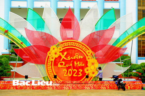 Chỉ còn ít ngày nữa là đến tết Nguyên đán Quý Mão 2023. Trên các tuyến đường của TP. Bạc Liêu, lực lượng công nhân đang khẩn trương chỉnh trang diện mạo đô thị, trang trí những tiểu cảnh Tết và tạo cảnh quan xanh - sạch - đẹp để “dệt” nên chiếc áo mùa xuân mới.